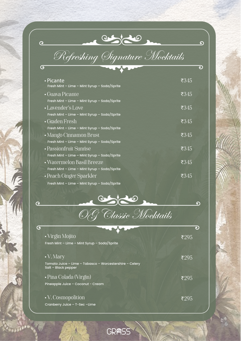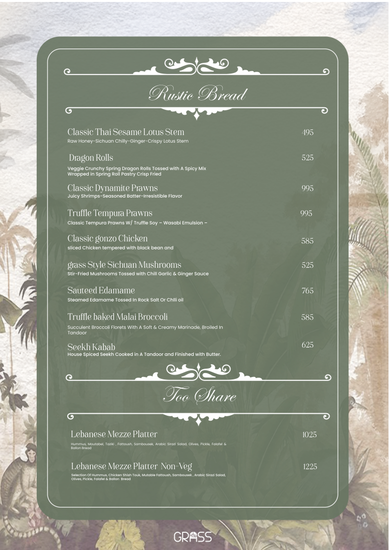 Grass Cafe Menu